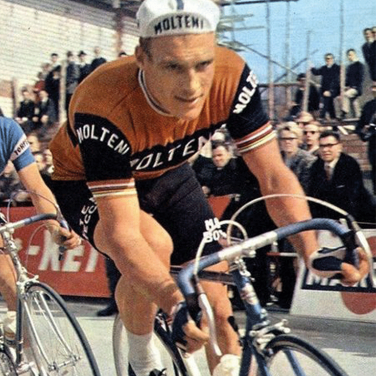 鲁迪·阿尔蒂格 (Rudi Altig),Molteni 车队的“曼海姆公牛”,于 1966 年在纽博格林家乡的 Bottecchia 赛道上赢得了世界冠军。