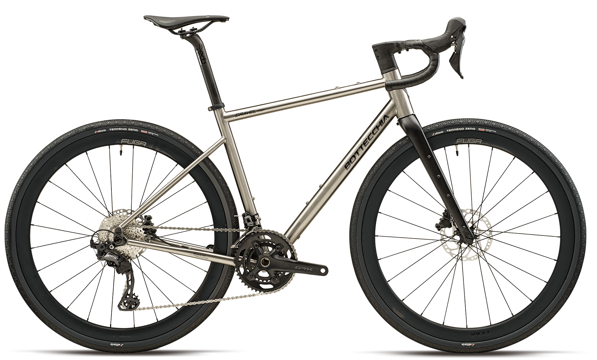 Gravel Titan车架所采用的9级钛合金因其技术和机械性能而备受赞誉。首先,它在力量和重量上都非常出色,既非常坚固又易于操作。钛还具有很高的天然弹性,使车架能够吸收地面振动,从而提高长途旅行的舒适性。它适合各种气候和天气条件,不怕生锈或其他外部因素。凭借其特性,无需特殊维护或喷漆即可保持性能和美观。