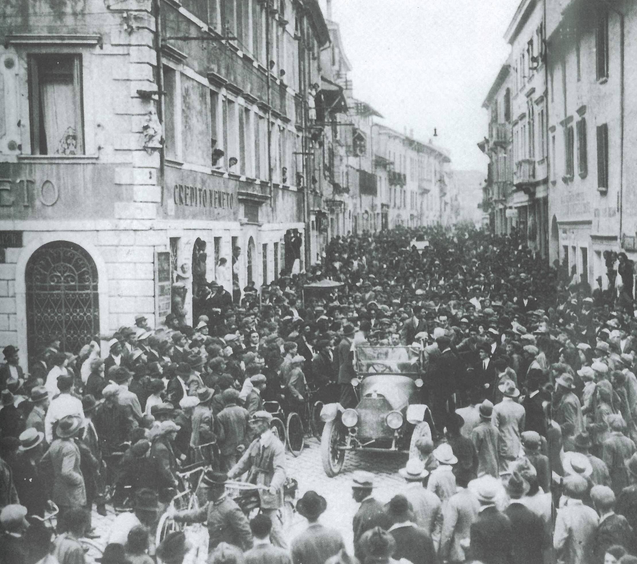 第十一届Giro d‘Italia意大利自行车赛冠军由Costante Girardengo获得,Ottavio Bottecchia在总分类中排名第五,但在独立和初级分类中排名第一。因此,在Giro中,众多媒体赞誉Ottavio为“比赛中最优秀的人”。Ottavio Bottecchia在第11届意大利国际自行车赛中获得第五名,这是他职业选手的第三年,在这一年,他引起了法国汽车制造商的Aldo Borella的注意,在Aldo Borella建议下,Ottavio Bottecchia将与无所惧Pélissier兄弟一起参加环法自行车赛。从第一阶段开始,很明显,Ottavio Bottecchia是一个独特的、伟大的冠军:在第一阶段结束时,从巴黎到勒阿弗尔381公里,Ottavieo在200多名参赛者中以第二名的成绩冲过终点线。法国人民已经接受了他,他的名字在每个人的嘴唇上都是“Bottassià!Bottascià!”。但真正令人惊讶的是,在下一阶段,他穿着黄色领骑衫获得了第一名。法国记者每天报道称赞意大利人获胜的消息。这位意大利冠军的第一次环法自行车赛赢得了所有意大利人的心和支持,最终以惊人的第二名结束,成绩仅次于他的队长Henri Pelissier。