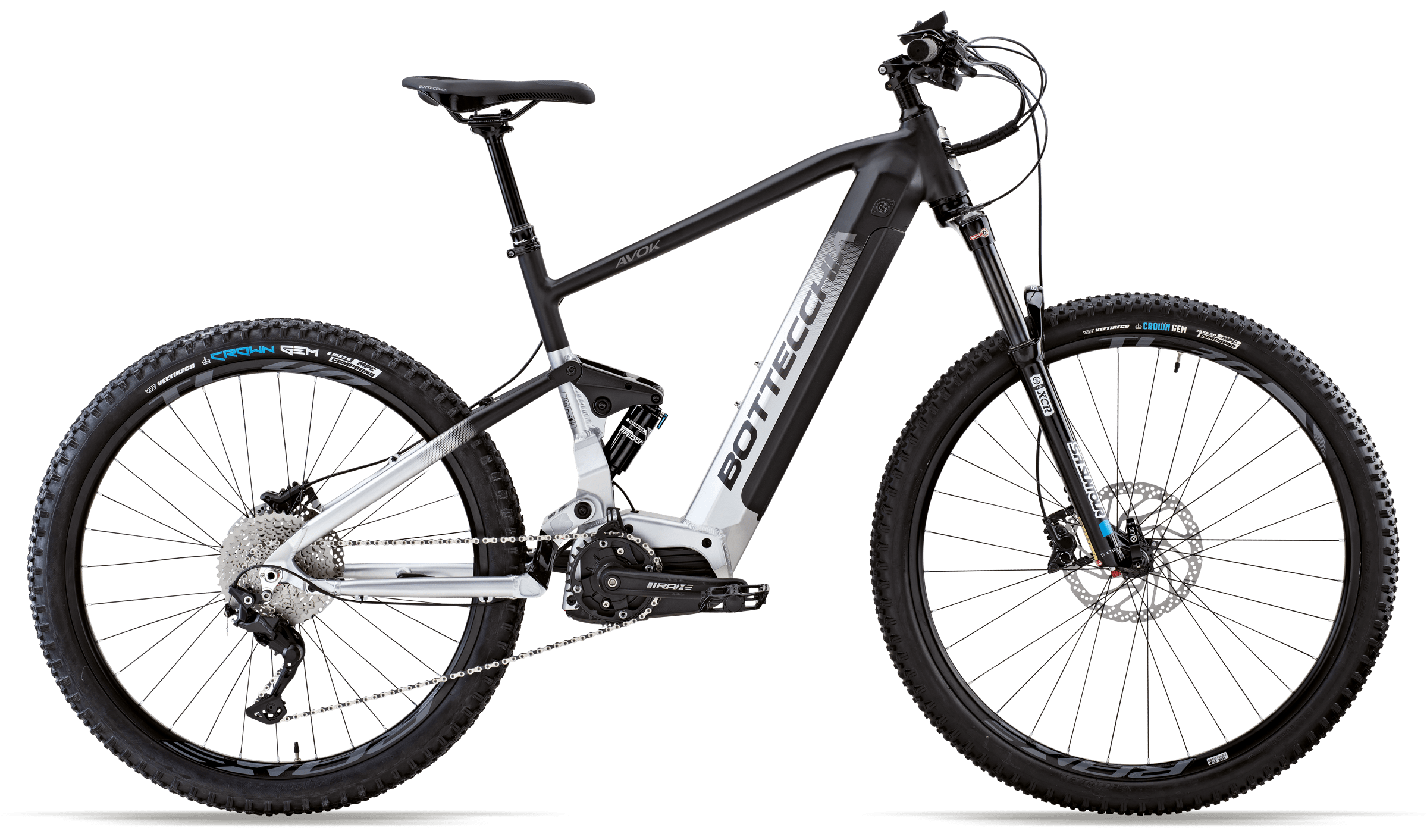 AVOK是最新一代E-FULL,配备INFINITY,集成900 Wh电池,重新诠释了双避震电动山地车的理念。更强大的动力、更远的里程、更多的地形。250W OLI SPORT PLUS 电机可提供强大的牵引力,扭矩可达 85Nm,而 900Wh 电池可让您实现真正的续航里程超过 200 公里。有两个版本:BE38 配备 Sram SX 变速箱、150mm RS 35 Silver 空气前叉和 RS Deluxe Select 减震器,BE37 配备 Shimano Deore 变速箱、140mm Suntour XCR 空气前叉和 Suntour Ra​​idon Lo 减震器。